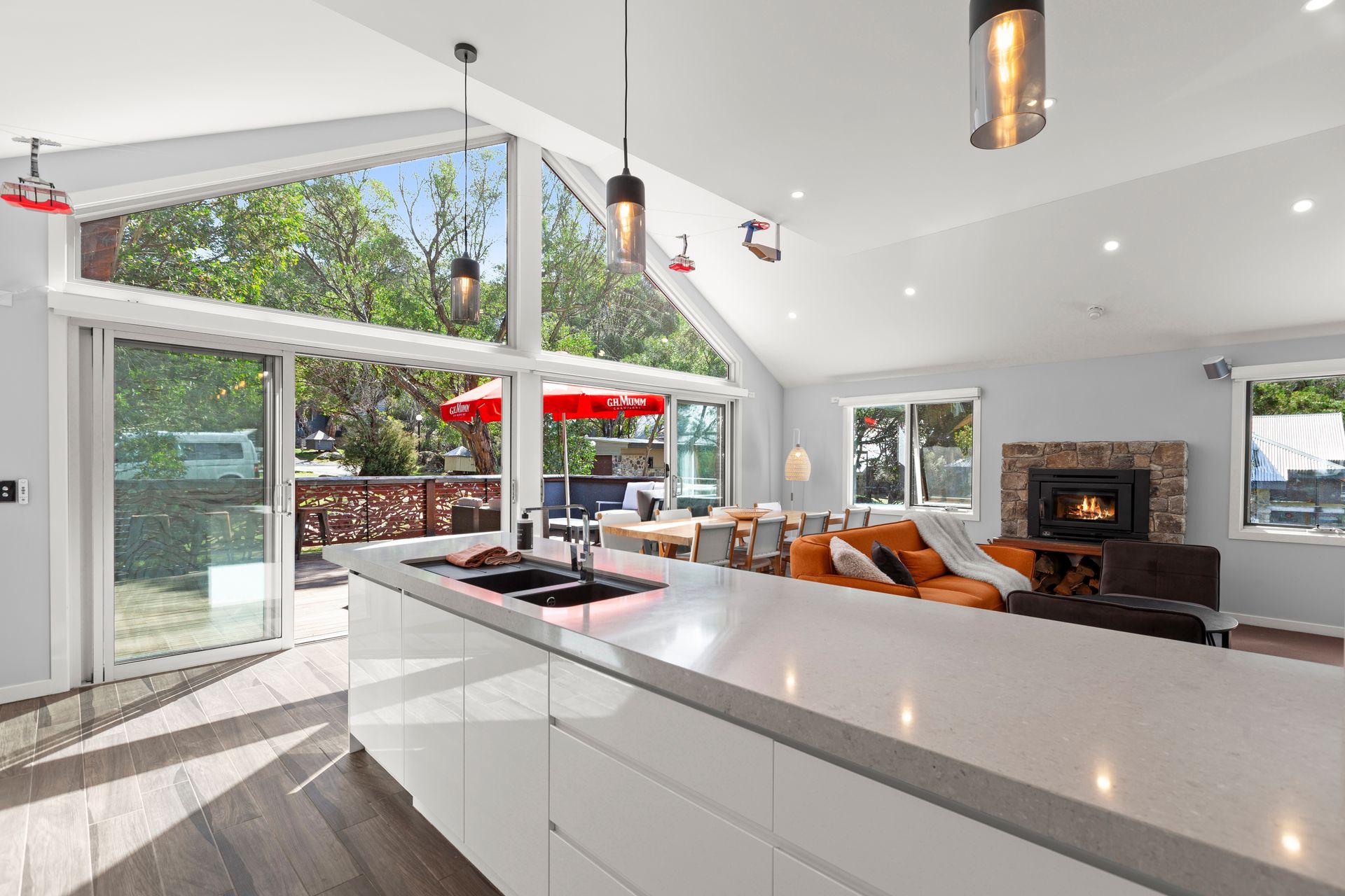 The heart of the home is the light-filled modern kitchen, complete with a spacious butler’s pantry—ideal for preparing après-ski nibbles while enjoying drinks and great company. Step out onto the expansive deck and take in the fresh alpine air on a warm, sunny afternoon, or enjoy a peaceful moment with your morning coffee.