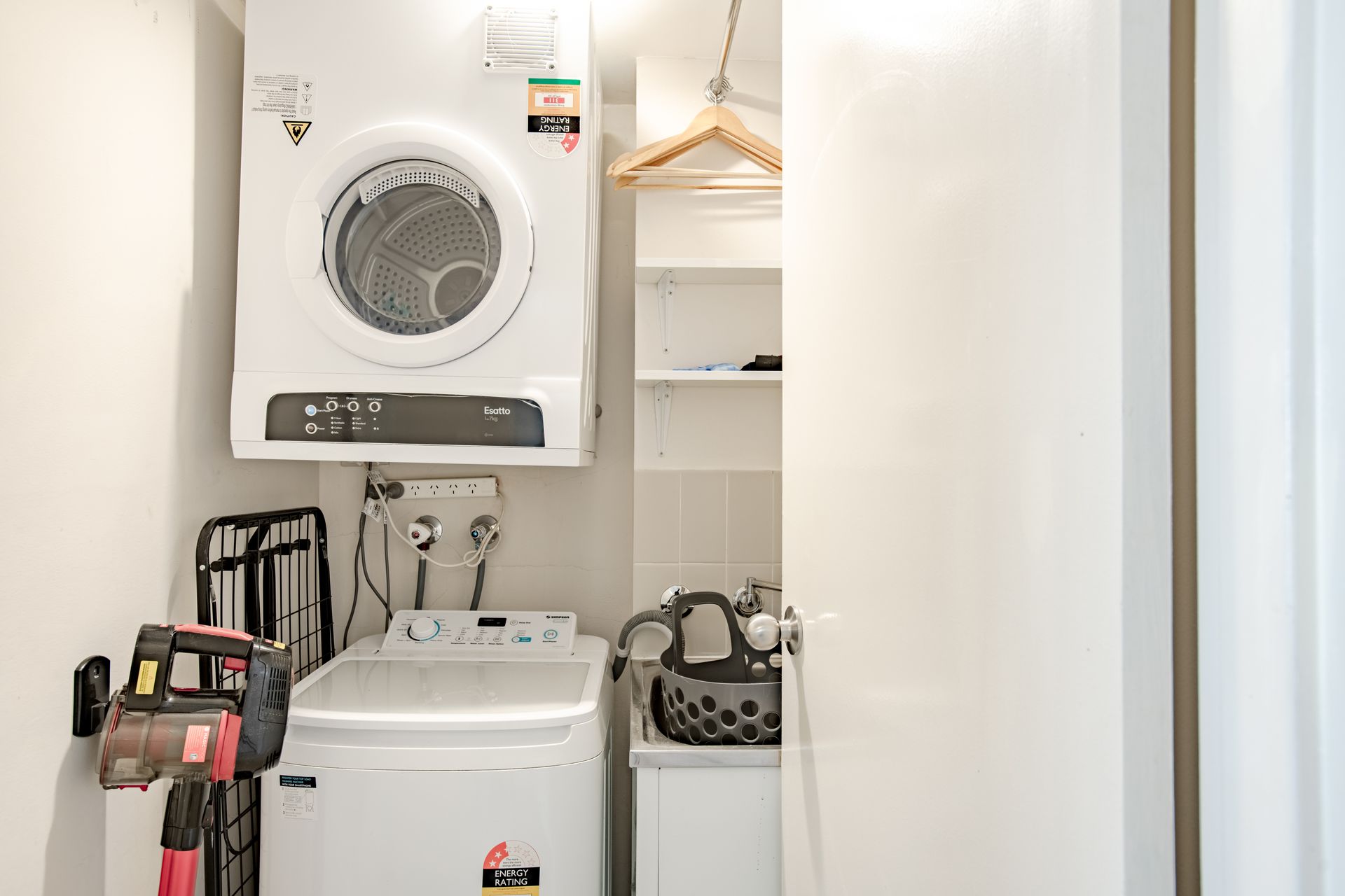 The bedroom features a King split bed, ensuring a restful night's sleep, while the bathroom and laundry facilities add to the convenience of your stay.