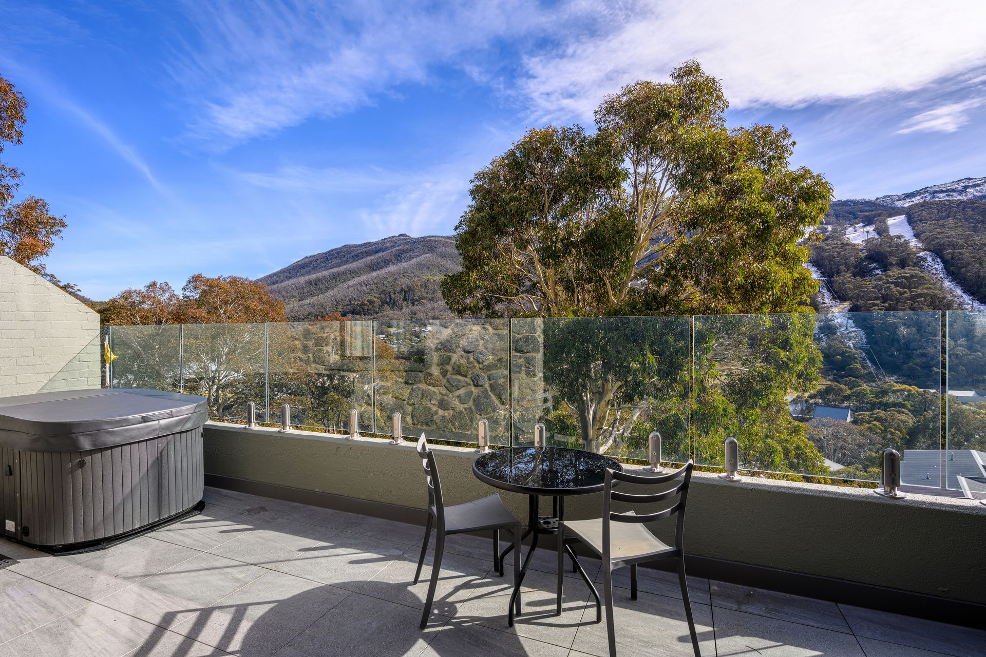 Welcome to Lantern 10, your luxurious accessible friendly 1 bedroom Deluxe apartment offering boutique ski home comfort and breathtaking mountain views. Step onto your large private balcony equipped with a weber BBQ and a hot tub for two, where you can soak in the scenery and relax in style.Indulge in the comfort of the king split bed in the bedroom, ensuring an amazing nights sleep. In the living room, a gorgeous fireplace and a comfortable double sofa provides additional sleeping space and the space for relaxation. The fully equipped kitchen, complete with a Nespresso coffee machine, invites cozy mornings and space to eat in.