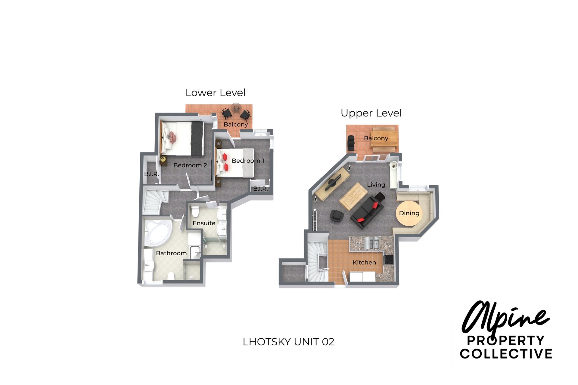 Lhotsky 2 has 2 bedrooms and a comfortable sofa in the living room, a fully self contained kitchen and laundry facilities. It is home to two large bathrooms, one with corner spa for those after mountain soaks. There is one onsite car parking space.