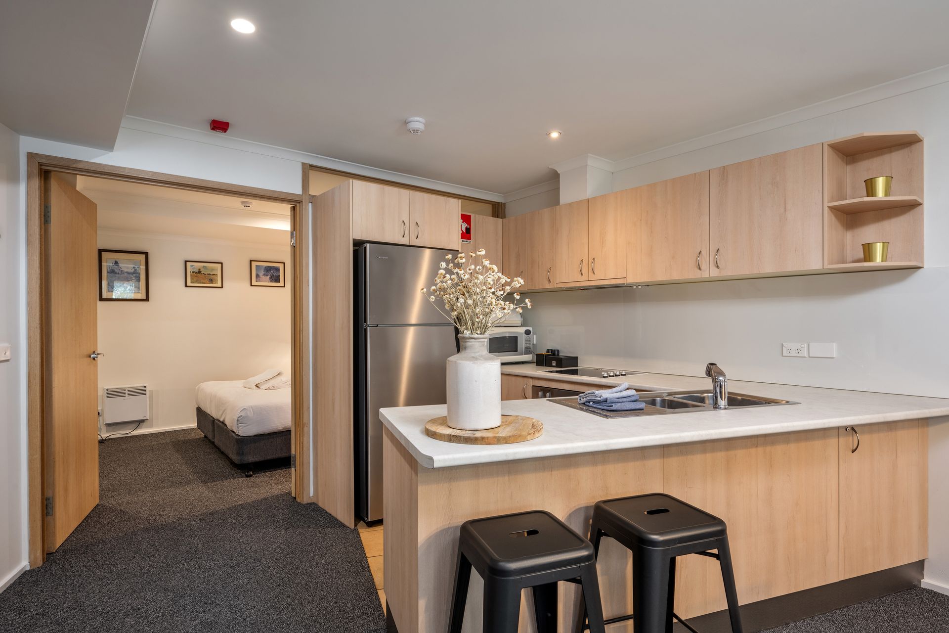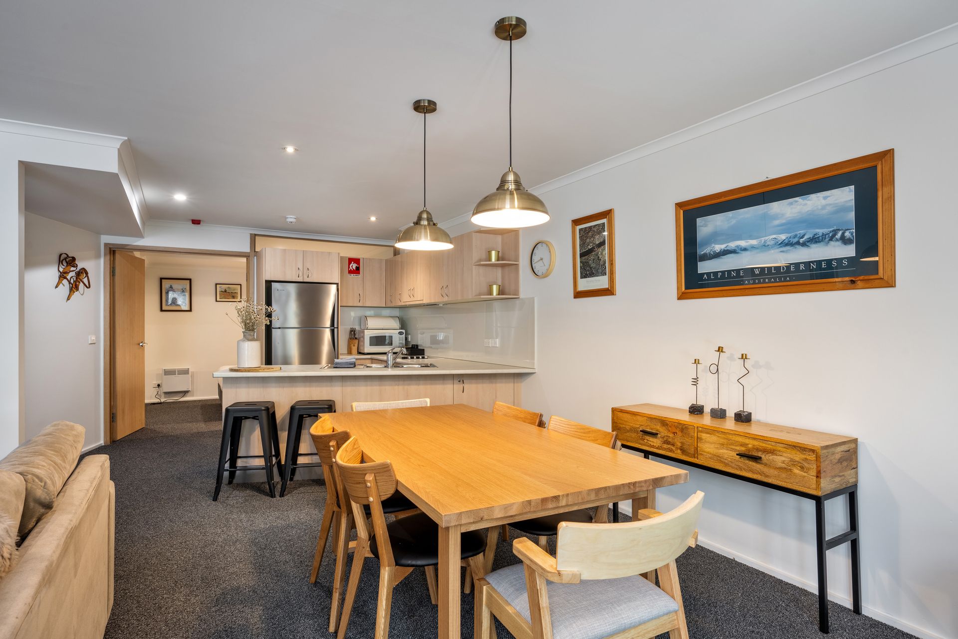This Scandinavian style apartment is arguably one of the largest 1 bedroom apartments in Thredbo, it has a king split bed in the bedroom and a comfortable double sofa in the living room with a fully self contained kitchen complete with Nespresso coffee machine and laundry facilities. Lhotsky 7 also has free wireless internet and one onsite parking space on the road level.
